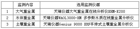 ×ÛÉÏËùÊö £¬ÓÐÉ«½ðÊô¿óÒµ¶ÔÇéÐεÄÖØ½ðÊôÎÛȾ°üÀ¨ÁË´óÆø¡¢Ë®ÌåºÍÍÁÈÀÈý¸ö·½Ãæ¡£Òò´Ë £¬ÎªÁËÖÜÈ«¼à²âÓÐÉ«½ðÊô¿óÒµÇéÐÎÖØ½ðÊô¼à²âϵͳ°üÀ¨£º´óÆø¡¢Ë®ÌåºÍÍÁÈÀÈý¸ö²¿·Ö £¬Ñ¡Óüà²âÒÇÆ÷ÈçÏÂ±í£º