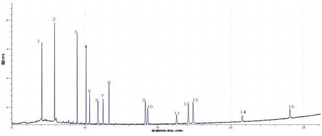 3.2 15ÖÖÁÚ±½¶þ¼×Ëáõ¥ÀàÎïÖÊ»ìÏý±ê×¼ÈÜÒº×ÜÀë×ÓÁ÷¼à²âͼ£¨TIC£©£º