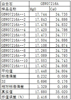 ¢Ü £®ÏÖʵ²âÊÔ°×ÔÆÊ¯¹ú±êÑùGBW07216AµÄÊý¾ÝÈçÏÂΪ